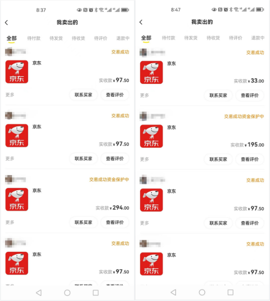 交易完我发现2笔百元以上的单子,我交易的资金被保护,也就是被冻结了。而其它百元以下的单子,虽然是秒收货,都是顺利收款,没有出问题。
