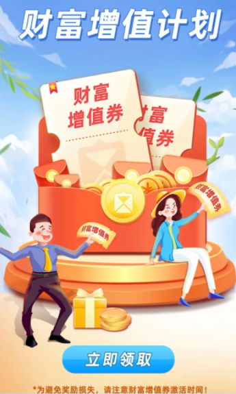 加息券领取方法:财富增值计划广告点进去,点击立即领取并激活。